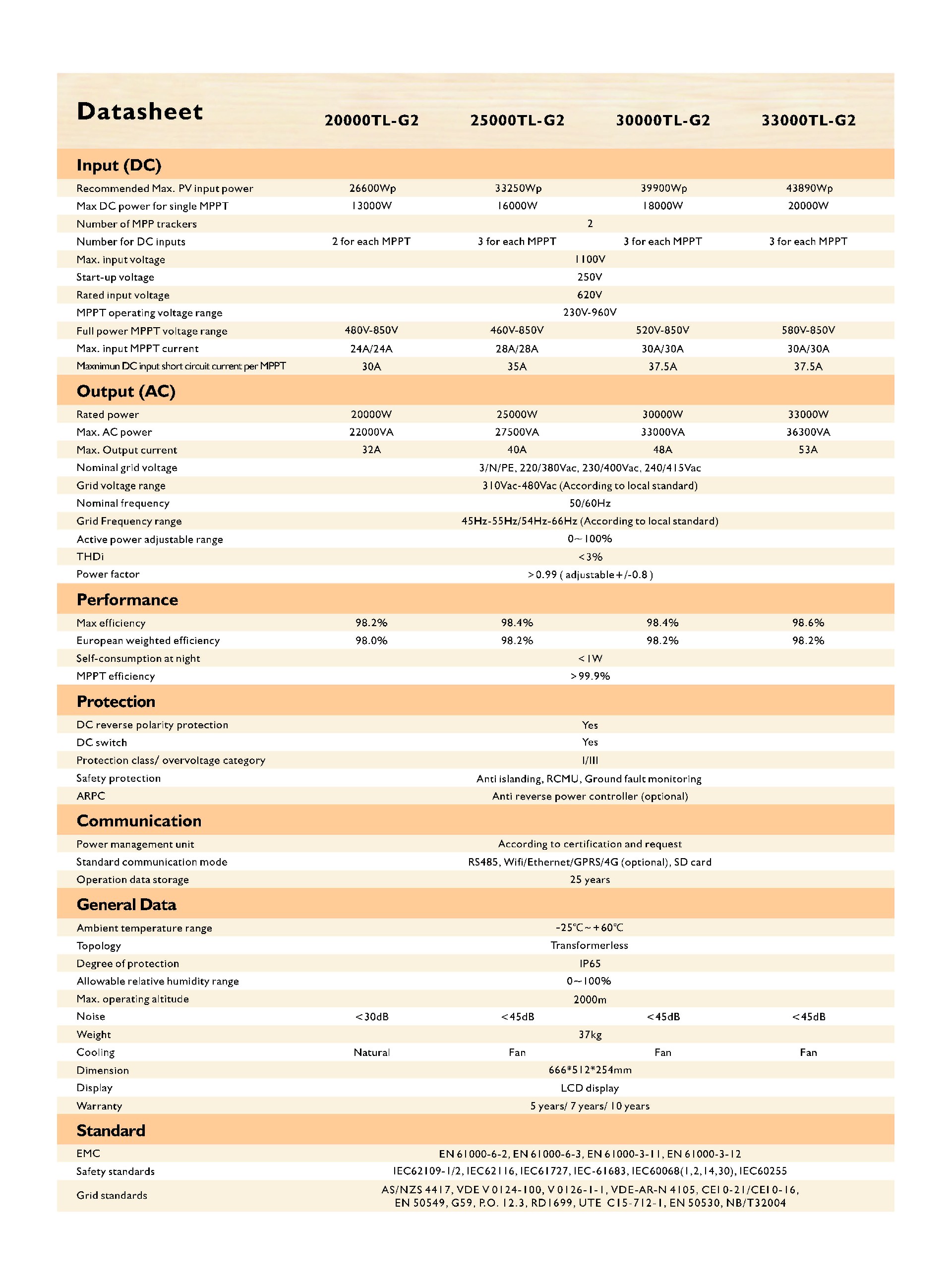 Datasheet | Ooitech 20000TL-G2 | Ooitech 25000TL-G2 | Ooitech 30000TL-G2 | Ooitech 33000TL-G2 | |
