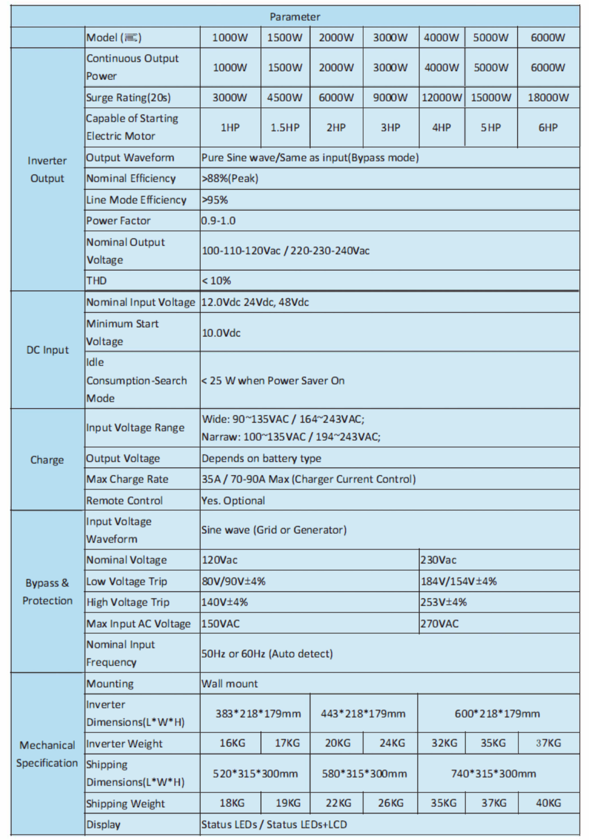 1. Contains four functions: mains bypass, mains charging, inverter, UPS, fully automatic switching